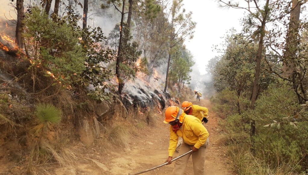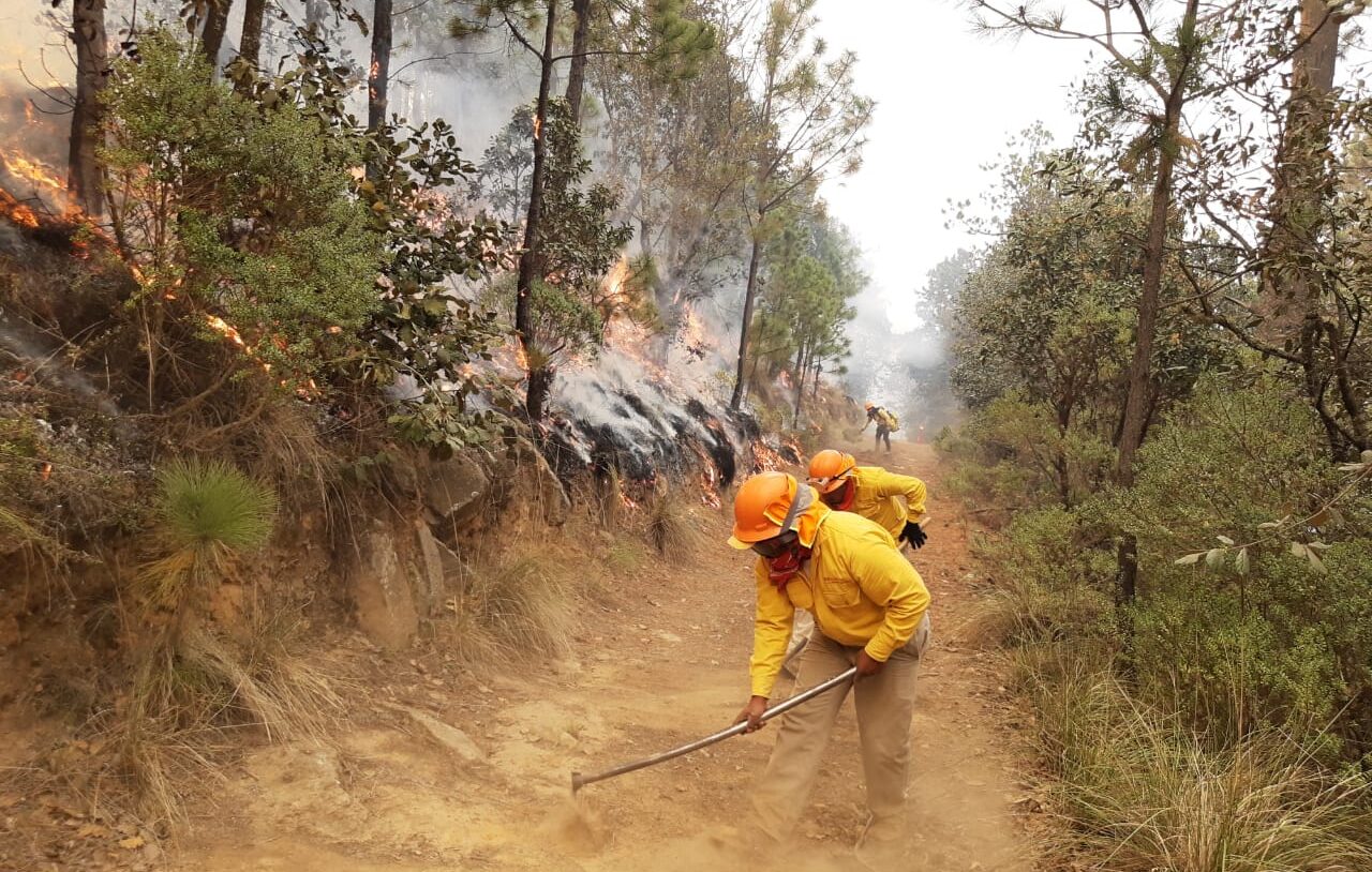 A las 16:00 hrs las fuerzas de tarea reportan que se tiene el 80% de control y un 30% de liquidación del incendio forestal, con una afectación estimada de manera preliminar en 30 hectáreas de bosque de encino y palma neolina.