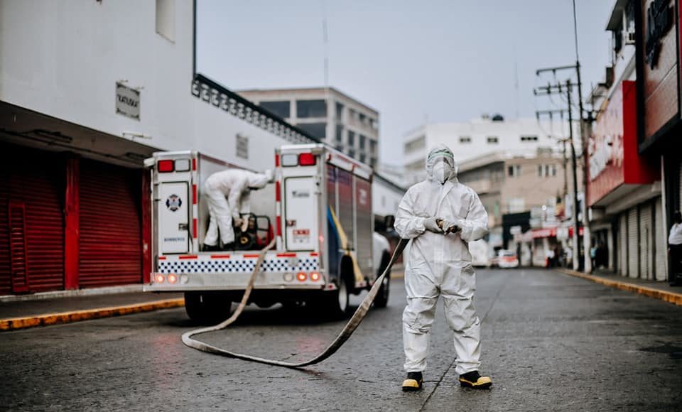 Encabezado por el Presidente Municipal Juan Antonio Aguilar Mancha, este operativo por el primer cuadro de la ciudad, inició desde la calle Genaro Rodríguez, continuando por avenida Juárez hasta la calle Allende, prolongando los esfuerzos al parque reforma donde fueron cubiertas todas las áreas comunes para evitar contagios y proteger a los tuxpeños del Covid-19.