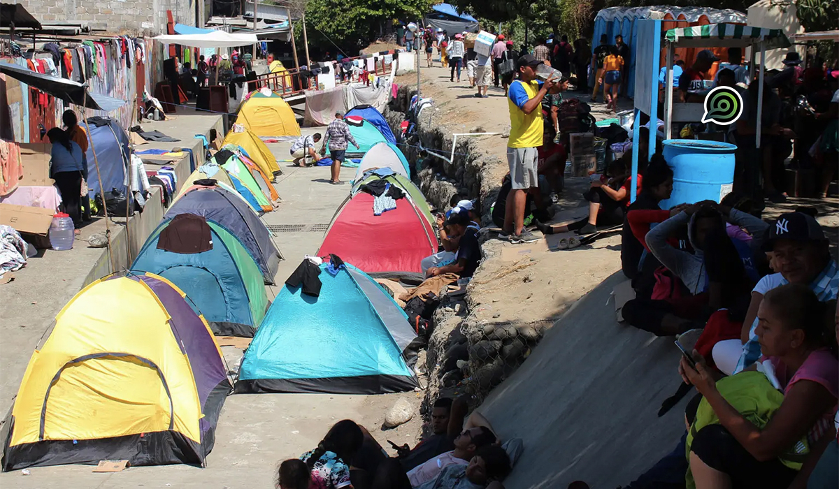 En la frontera sur, en Ciudad Hidalgo, se mantiene un campamento de entre 500 y 1.000 venezolanos con casas de campaña en espera de recibir atención de las autoridades mexicanas.