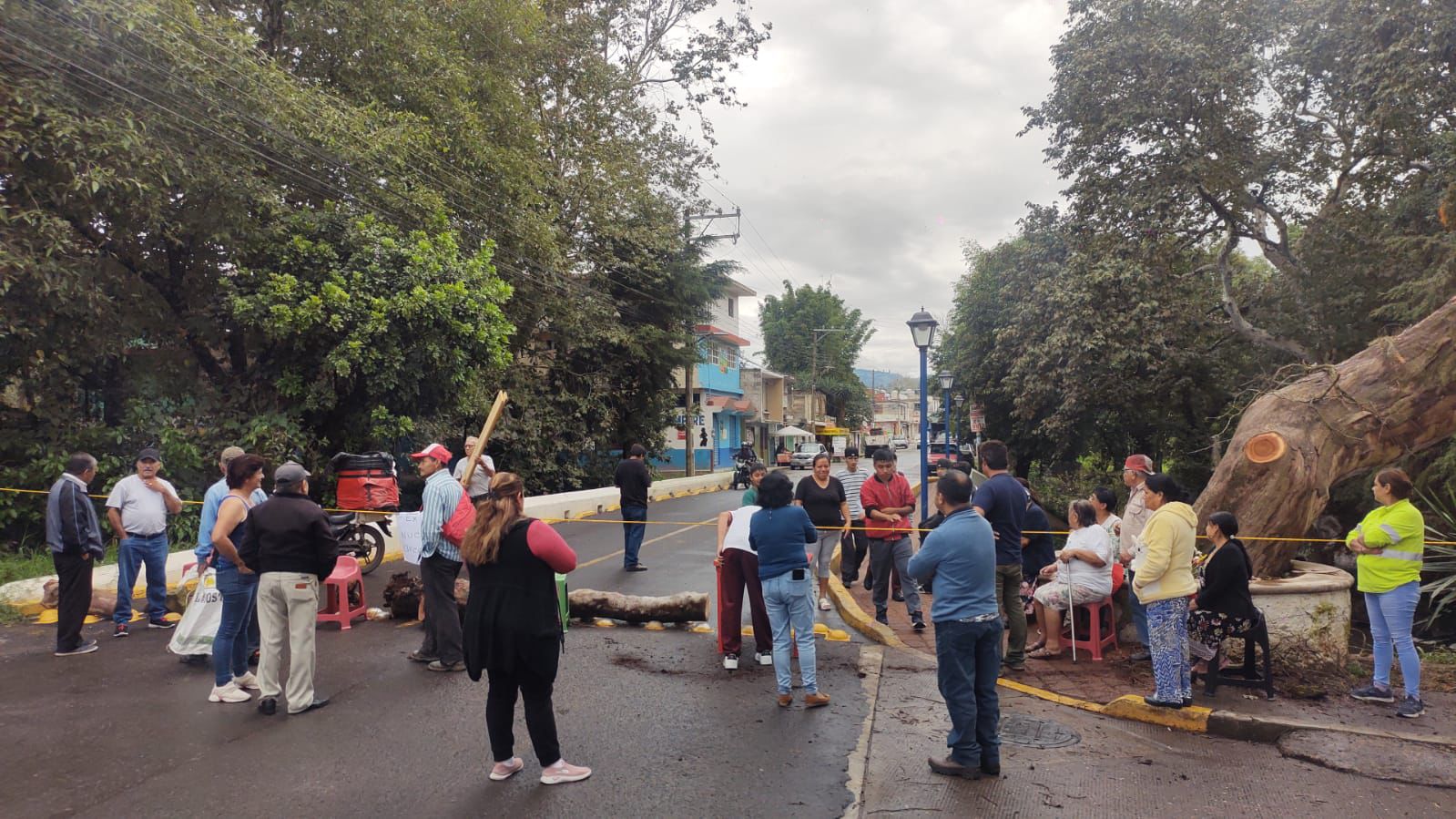 Xalapa, Ver.- Vecinos de la colonia 21 de marzo, bloquearon la calle, a la altura del puente del Río Sedeño debido a que este jueves derribaron un árbol sano, de la calle Lino Serrano.