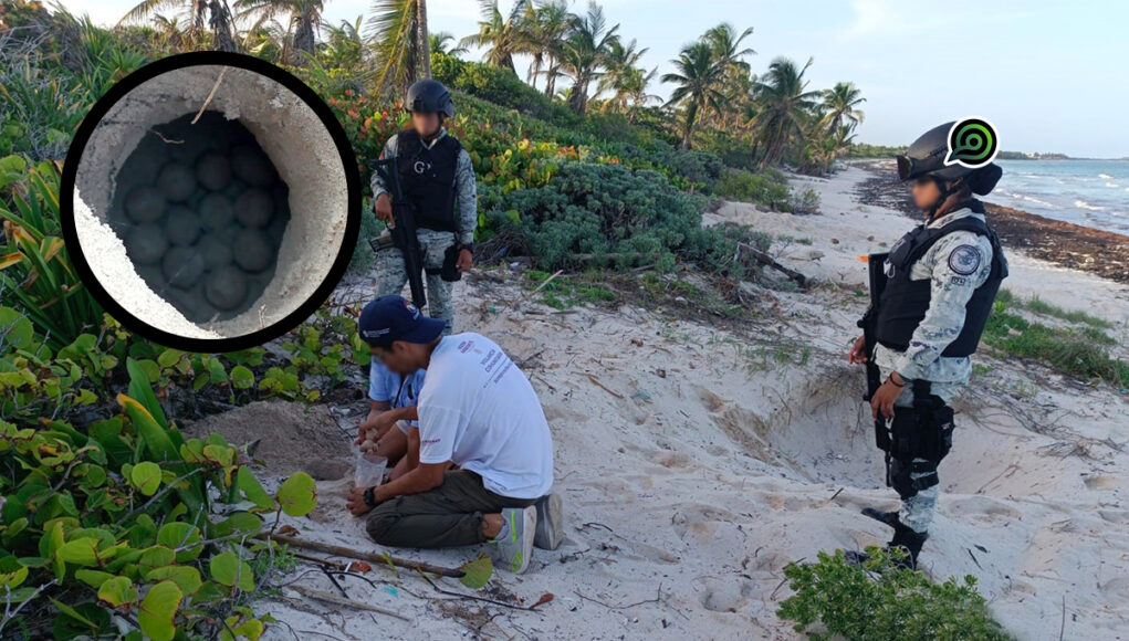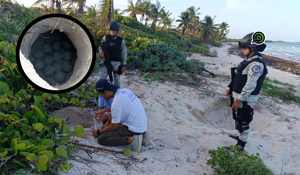 En Quintana Roo, integrantes de la Guardia Nacional (GN) recuperaron huevos de tortuga marina tras realizar patrullajes de seguridad, vigilancia y prevención del delito en el municipio de Tulum.