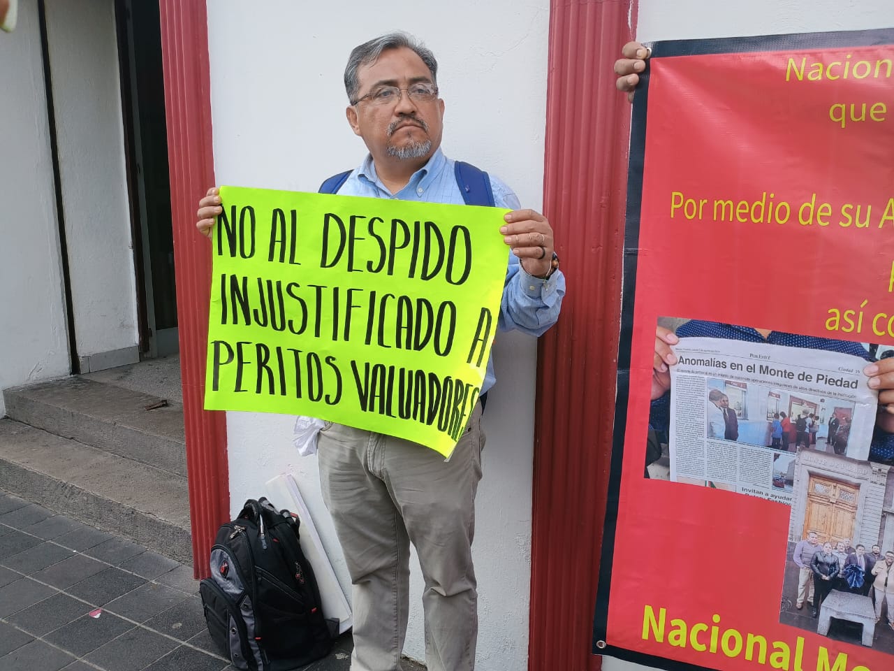 En el Monte de Piedad despidieron a peritos valuadores, injustificadamente, por lo que protestan en Xalapa.