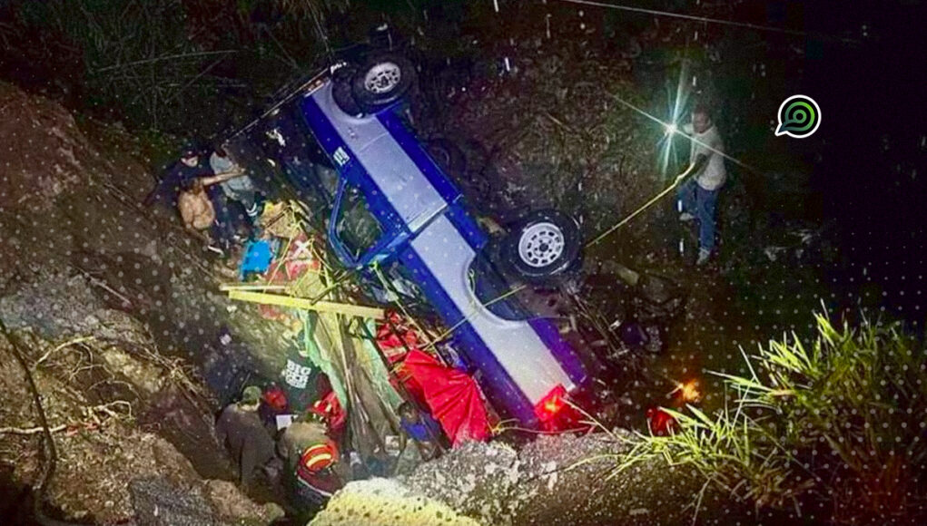 Una camioneta que llevaba hasta 21 feligreses rumbo a Chalma cayó primero a un socavón y luego volcó hacia un barranco.