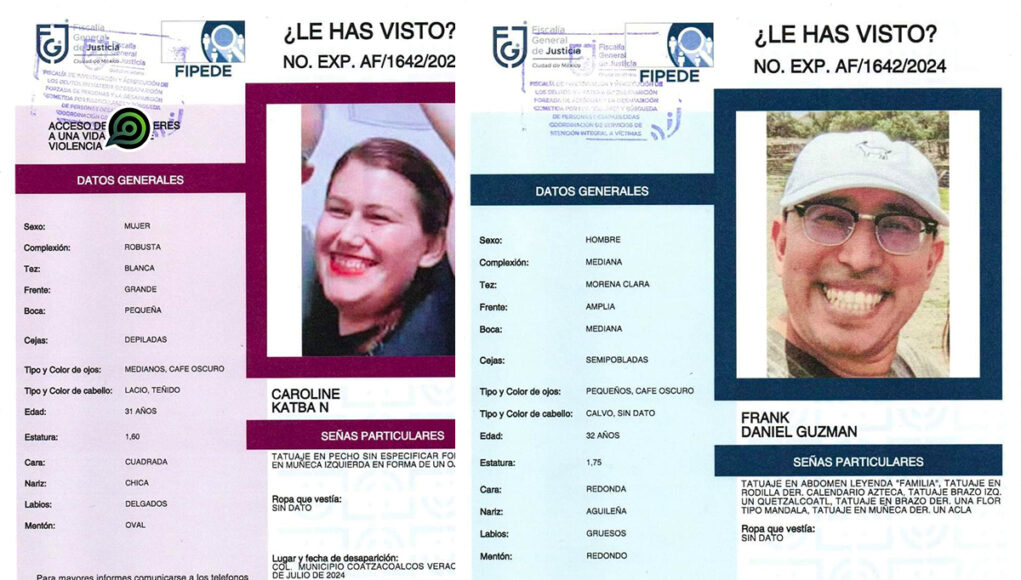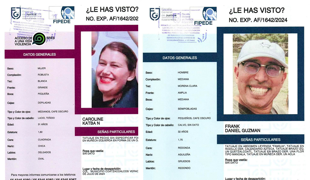 Coatzacoalcos, Ver.- En el municipio de Coatzacoalcos se reportó la desaparición del matrimonio de extranjeros, formado por Frank Daniel Guzmán y Caroline Katba, desde el pasado 22 de Julio de 2024.