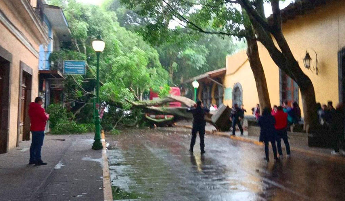 Coatepec, Ver.- Un árbol de grandes dimensiones cayó esta mañana sobre la calle de Cuauhtémoc en el municipio de Coatepec, afortunadamente solo causó daños materiales sin que resultaran personas lesionadas.