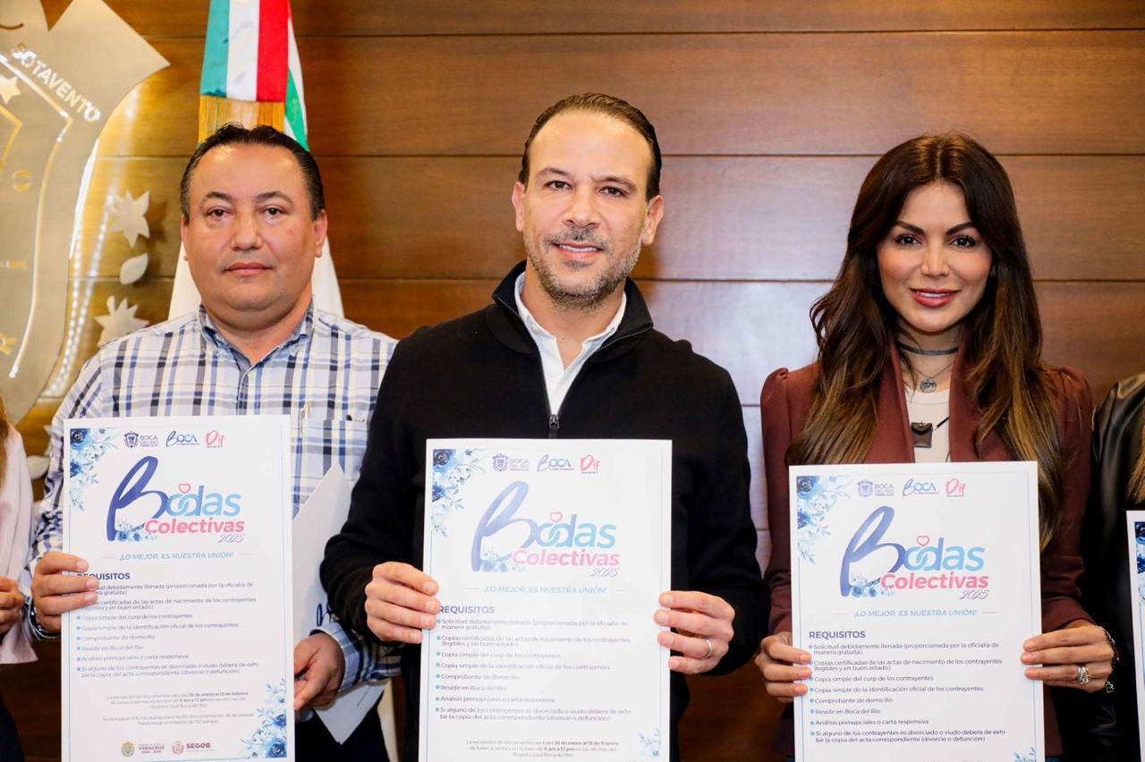 Fomentando el fortalecimiento de lazos familiares a través de la formalización del matrimonio, el Gobierno Municipal de Boca del Río presentó este jueves la convocatoria de las Bodas Colectivas 2025 a celebrarse el 20 de febrero.