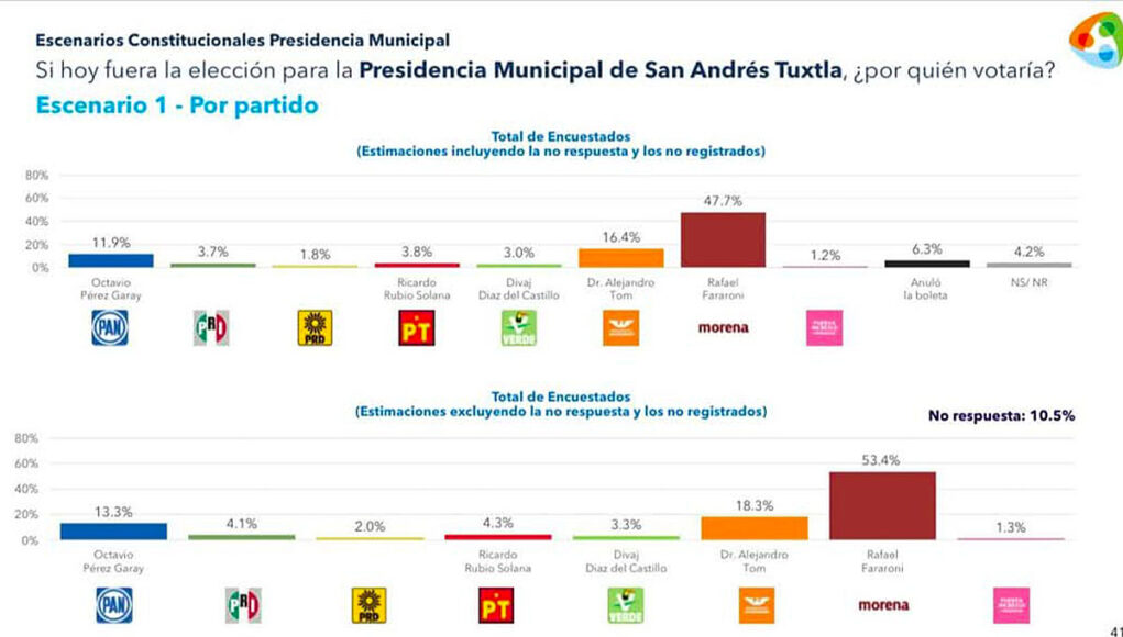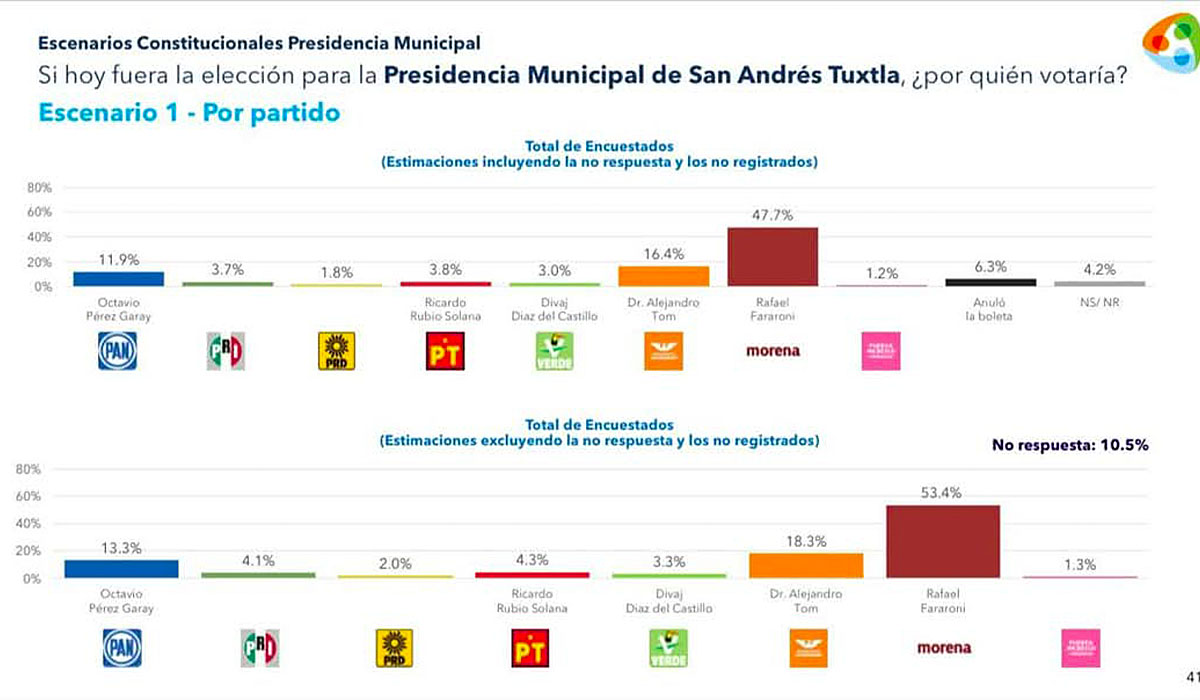 Los datos arrojados por la casa encuestadora anticipan que la alianza MORENA-PVEM, encabezada en el perfil de Rafael Fararoni, estaría garantizando el triunfo del partido en el gobierno, en unos de los diez municipios más importantes de Veracruz.
