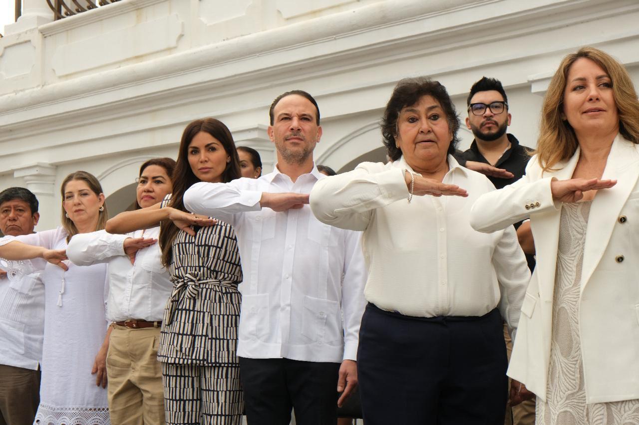 Este lunes 24 de febrero, el alcalde Juan Manuel Unánue Abascal, encabezó la ceremonia conmemorativa por el Día de la Bandera, en la que participaron más de mil 500 personas de diferentes instituciones educativas.