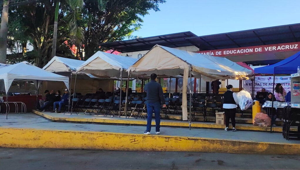 Xalapa, Ver.- Docentes adheridos a la Unión de Sindicatos Magisteriales del Estado de Veracruz que encabeza ocho sindicatos, van por el tercer día de la toma de la Secretaría de Educación de Veracruz (SEV) y de 11 delegaciones.