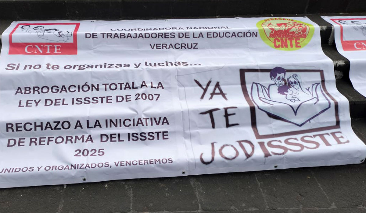 Xalapa, Ver.- Integrantes de la Coordinadora Nacional de Trabajadores de la Educación, (CNTE) no están de acuerdo con la Ley del ISSSTE impulsada desde el Gobierno Federal.