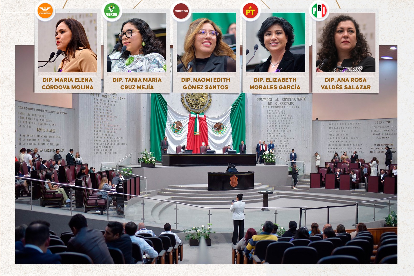 El dictamen es resultado de las iniciativas presentadas, primeramente, por la diputada Victoria Gutiérrez Pérez, y posteriormente, por las legisladoras Astrid Sánchez Moguel, Naomi Edith Gómez Santos, Janeth Adanely Rodríguez Rodríguez y Tanya Carola Viveros Cházaro, los días 15 y 27 de enero, respectivamente.