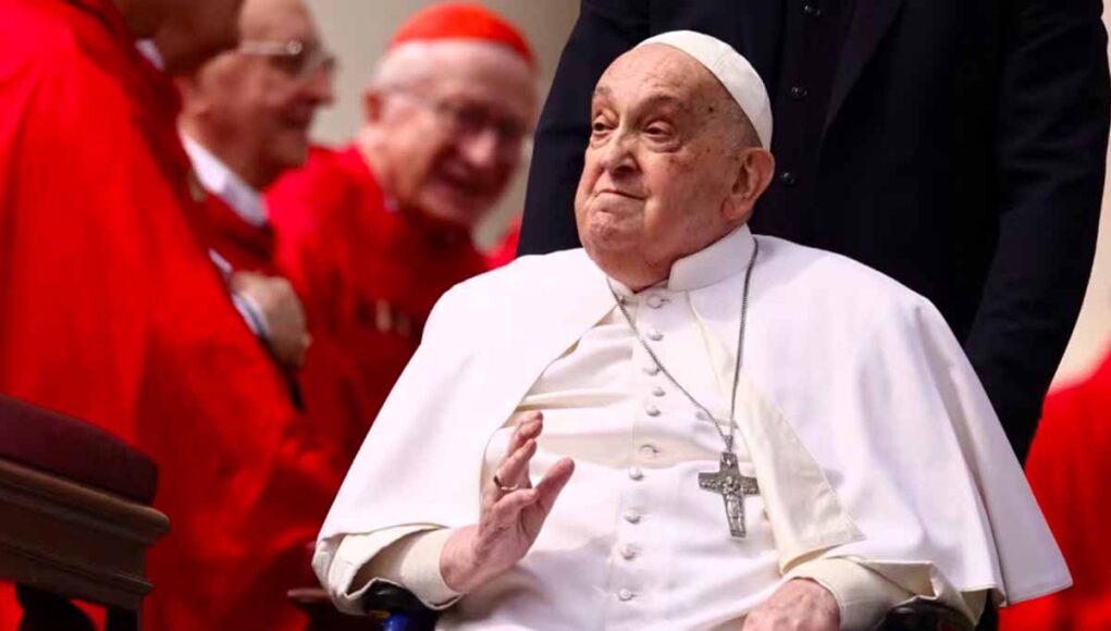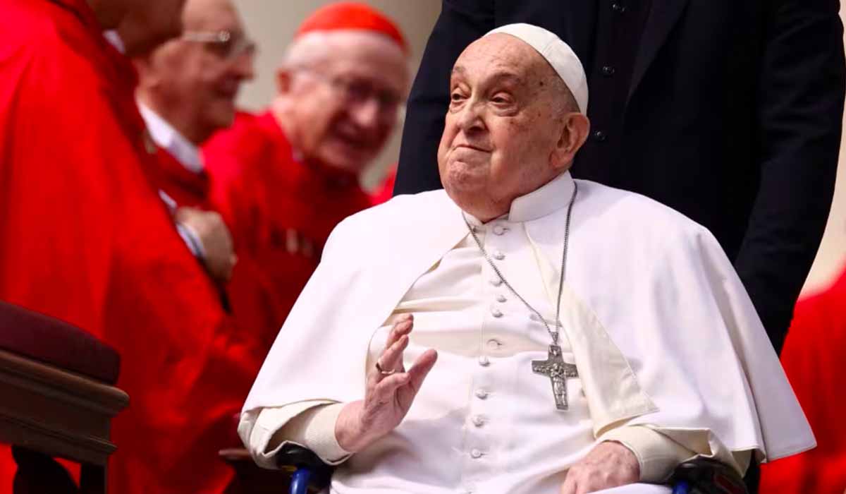 Muchos en la multitud extendieron la mano para tocarlo mientras era llevado en silla de ruedas por una rampa hasta el altar principal, donde ofreció su breve saludo ante un micrófono. El pontífice de 88 años no llevaba tubos nasales para oxígeno suplementario, como hizo durante una aparición similar el domingo pasado.