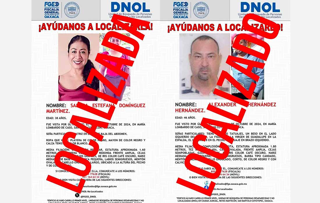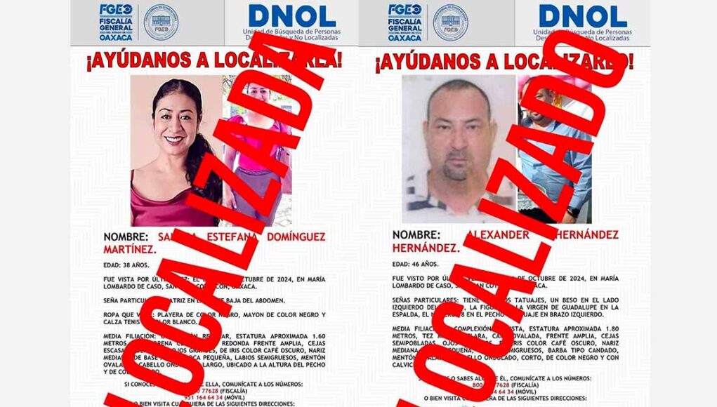 Xalapa, Ver.- La Fiscalía General del Estado de Oaxaca, en coordinación con diferentes instituciones estatales y federales, localizaron los cuerpos de la activista Sandra Estefana Domínguez Martínez y de su esposo Alexander Hernández Hernández.