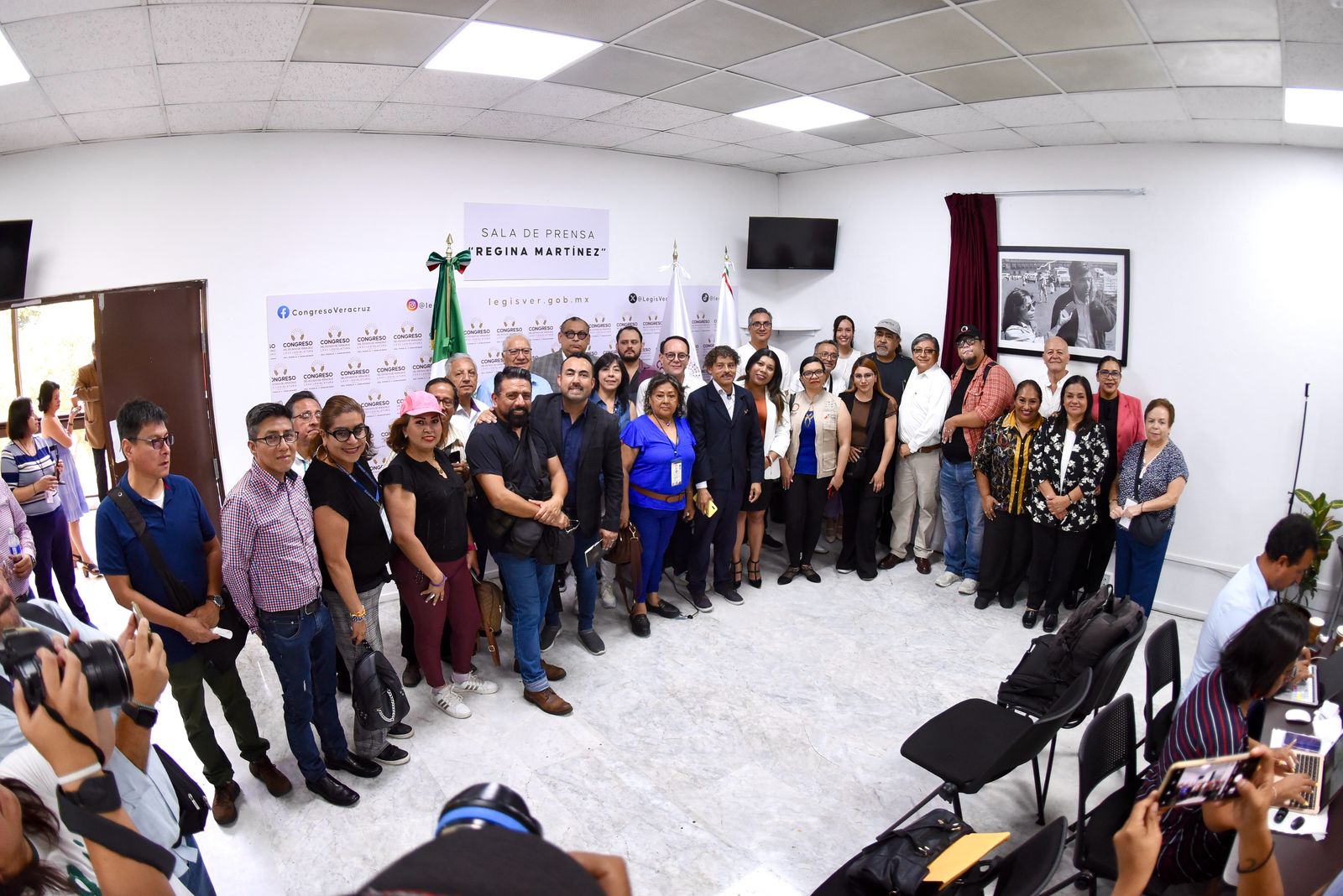 Xalapa, Ver., 28 de abril de 2025.- En cumplimiento a la instrucción del presidente de la Junta de Coordinación Política (Jucopo), diputado Esteban Bautista Hernández, la Coordinación de Comunicación Social del Congreso del Estado de Veracruz reinauguró la sala de prensa Regina Martínez y develó una fotografía emblemática de la periodista.