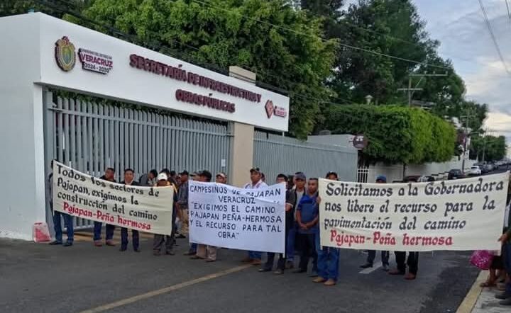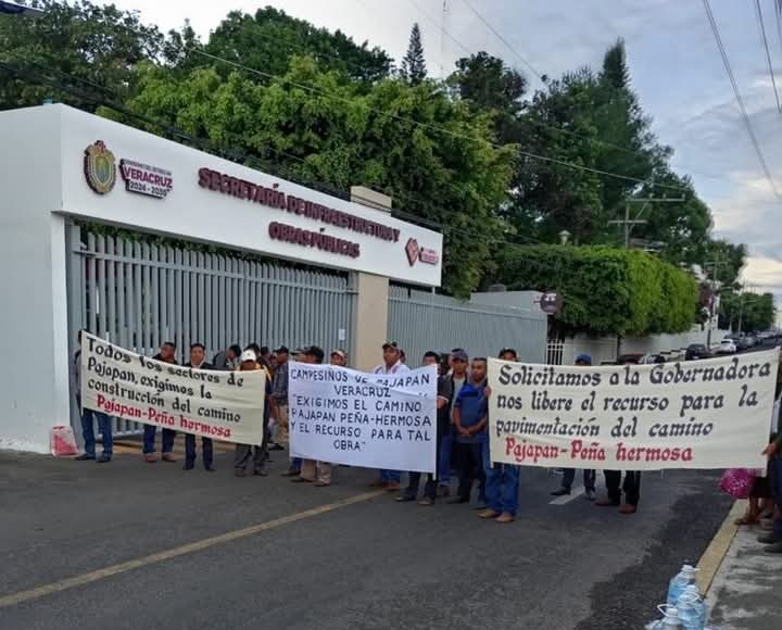 Xalapa, Ver.- Habitantes del municipio de Pajapan se manifestaron a las afueras de las oficinas de la Secretaria de Infraestructura y Obra Pública para exigir la construcción de la carretera Pajapan-Peña Hermosa.