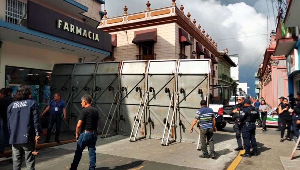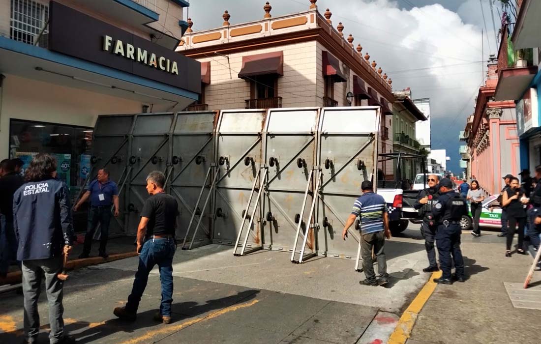 Xalapa, Ver.- La calle Benito Juárez en Xalapa a la altura del Organismo Público Local Electoral (OPLE) fue cercada para evitar que manifestantes inconformes por la elección en Tuxtlilla lleguen a irrumpir en las oficinas.