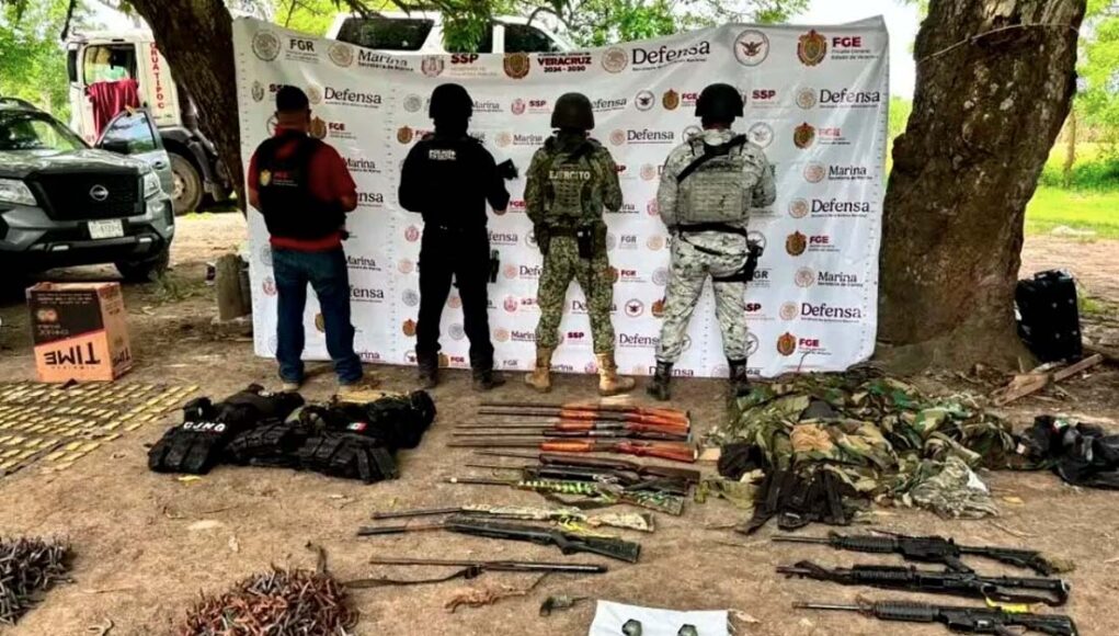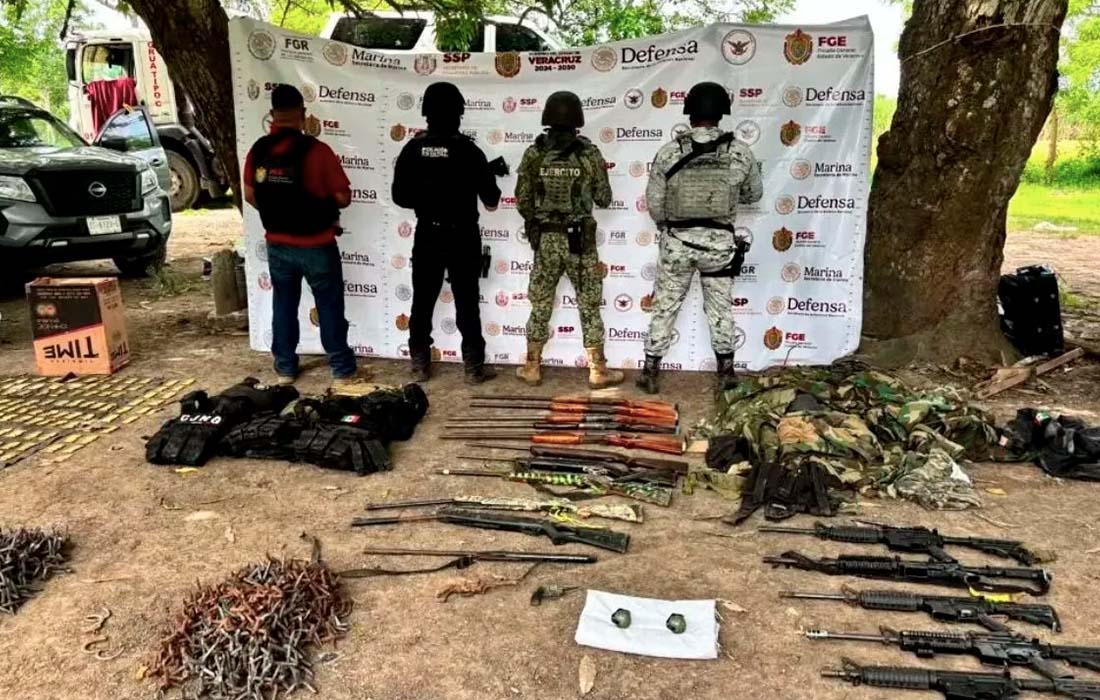 Sujetos armados dispararon contra fuerzas de Seguridad en Veracruz, lo que desató un enfrentamiento y posterior aseguramiento de un arsenal