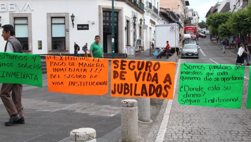 Xalapa, Ver.- La mañana de este jueves, trabajadores de la Unión de Beneficiarios del Seguro de Vida Institucional de Veracruz (UBSIVER), liderados por la maestra jubilada Rosario Rojas Aragón, un plantón permanente e indefinido en demanda del cumplimiento de pagos pendientes por parte del gobierno del estado.