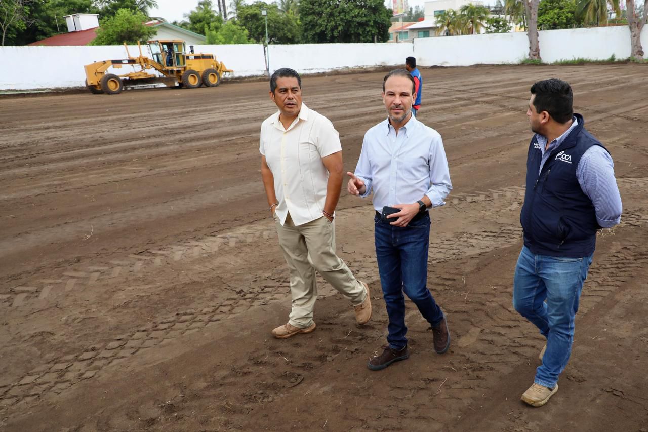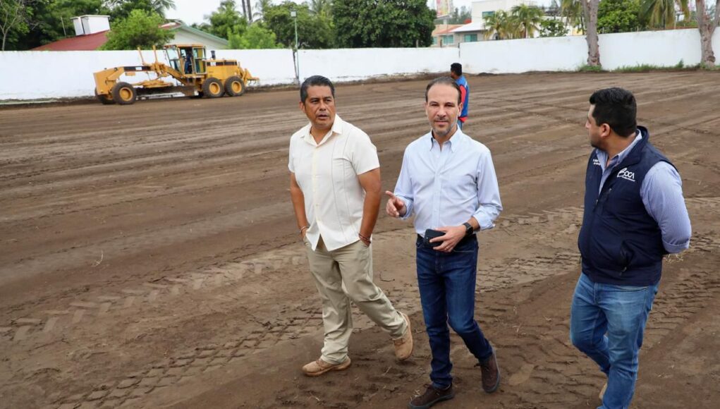 Como parte del compromiso con el fortalecimiento del deporte y su infraestructura, el alcalde de Boca del Río, Juan Manuel Unánue Abascal, realizó un recorrido de supervisión en la obra de construcción de una cancha de fútbol con pasto sintético en el Centro de Bachillerato Tecnológico Industrial y de Servicios (CBTIS) 79.