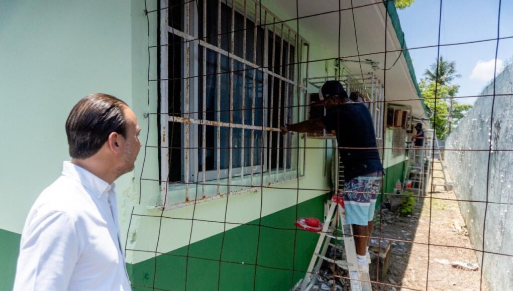 “Visité las obras de impermeabilización en la Primaria Netzahualcóyotl, de la colonia Venustiano Carranza II, donde estamos rehabilitando los baños con pintura e impermeabilizante en techos y estructuras, además del mantenimiento a los aires acondicionados”, expresó el edil.