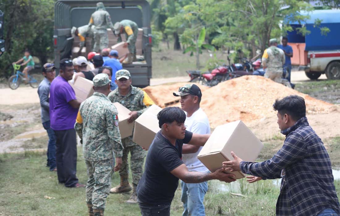 Este lunes, los apoyos llegaron a Potrero Nuevo, Lázaro Cárdenas y Morelos; así como vía fluvial a Xochiltepec, Halcón y Pino Suárez, en los municipios de Texistepec y San Juan Evangelista.