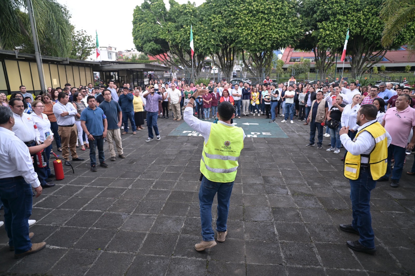 La Unidad Interna de Protección Civil está conformada por 50 personas y la integran las brigadas de Primeros Auxilios, Evacuación, Rescate y Combate de Incendios. Durante el simulacro, se realizaron diversas ejemplificaciones del rescate de personas y la atención médica que se dispone para valorar estados de salud.