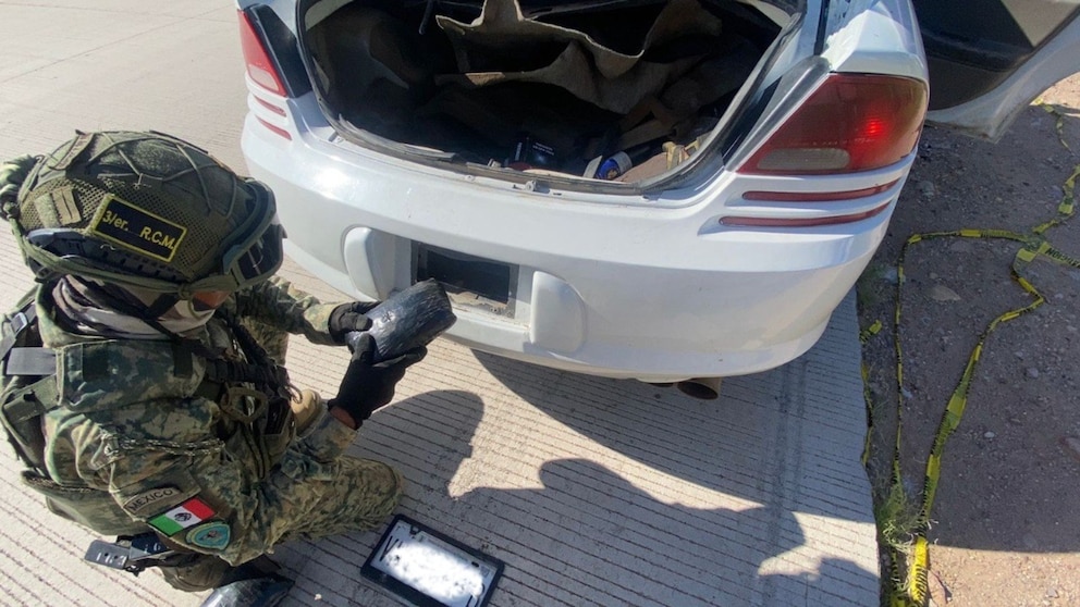 Decomisan cargamento millonario de fentanilo oculto en la placa de un auto en Sonora