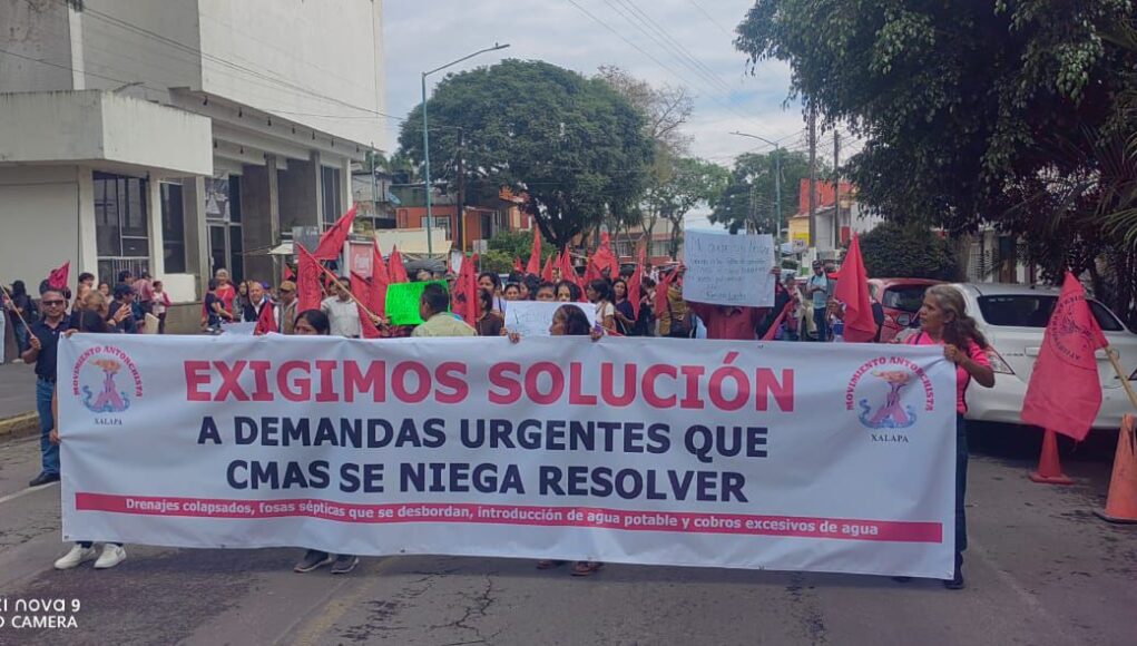 Los manifestantes, primero acudieron a la Comisión Municipal de Agua y Saneamiento (CMAS) y, al no ser atendidos se fueron hacia el Palacio Municipal ubicado en la zona centro de Xalapa.