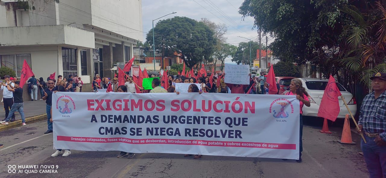 Xalapa, Ver.- Integrantes de Movimiento Antorchista en Xalapa, se manifestaron para denunciar que el Ayuntamiento de Xalapa no ha atendido sus problemas relacionados con drenajes y socavones que ponen en riesgo sus viviendas, además de que hay cobros excesivos en los recibos de agua.