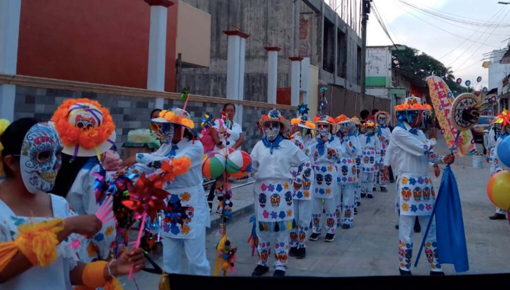 Los jóvenes mostraron gran entusiasmo en la presentación de su baile de esta singular fiesta que es historia de nuestros ancestros, es así como la maestra Martha Murrieta Murrieta nos platica y describe el significado de este desfile, «Los trajes que está ocasión portaron es una adaptación de la comunidad de Morelos, eligiendo el color blanco símbolo de pureza, adornados con calaveritas y flores de colores vistosos para darle la bienvenida a todos aquellos que han partido, también los trajes hacen honor a aquellos niños que se nos han adelantado, el bastón está adornado con objetos que de pequeños usaban como sonajas, cascabeles, muñecos, pelotitas, globos, rehiletes y listones multicolores entre otros adornos, en el sombrero se le colocaron flores de muerto como cempasuchil en un altar de vida, las luces significan la luz que alumbraran a aquellas almas para llegar a nuestro mundo y convivir con los vivos los días 30, 31 de octubre y 1 y 2 de noviembre, la danza se hizo con alegría y entusiasmo con el objetivo de darles la bienvenida a todos ellos».