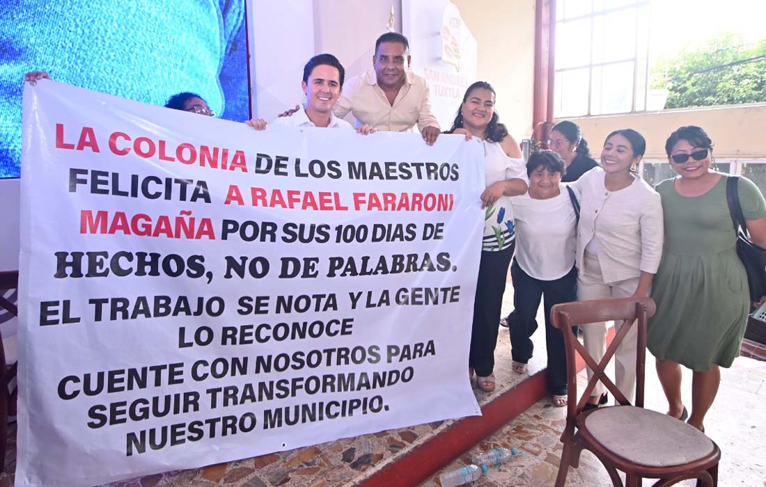 San Andrés Tuxtla, Ver., 19 de abril de 2026.- Este domingo, el presidente municipal, Rafa Fararoni Magaña rindió su informe de los primeros 100 días de Gobierno Municipal ante la ciudadanía sanadrescana.