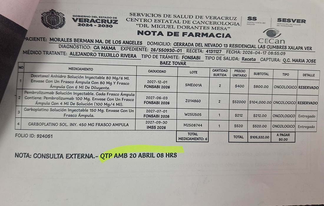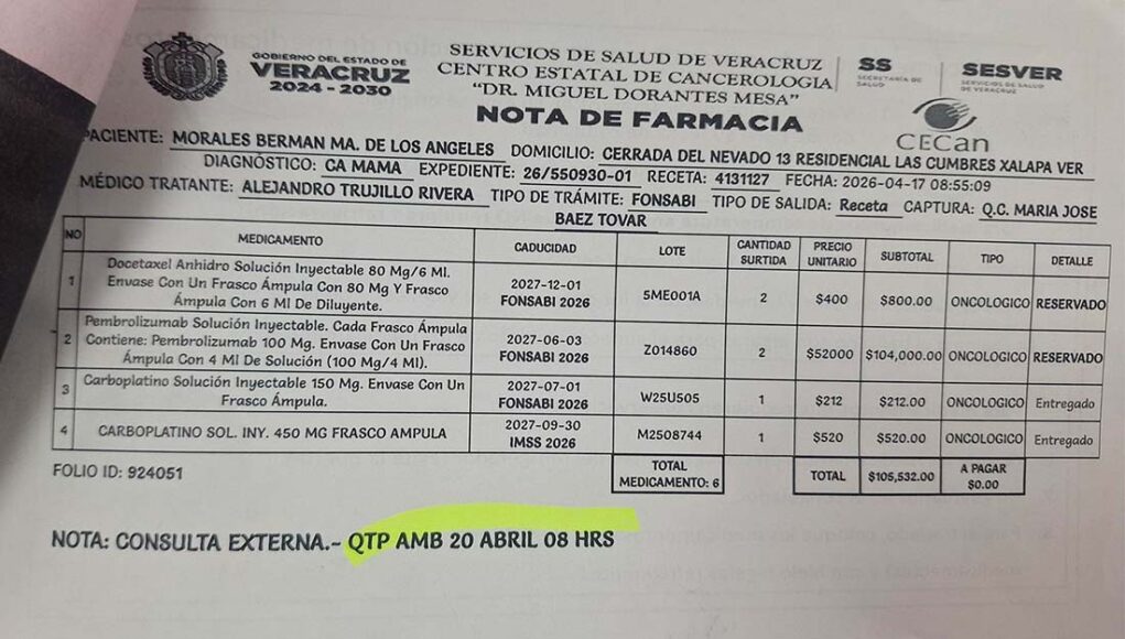 Xalapa, Ver.— Pacientes oncológicos del Centro Estatal de Cancerología “Dr. Miguel Dorantes Mesa” (CECAN) denunciaron desabasto de insumos básicos para la aplicación de quimioterapias, situación que ha provocado retrasos e incluso la suspensión de tratamientos.